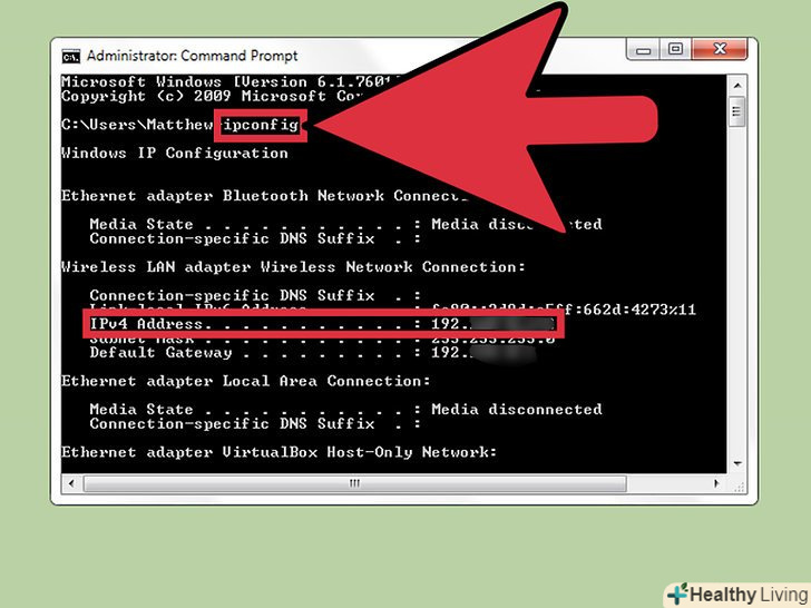 Знайдіть IP-адресу віддаленого комп'ютера. він необхідний, щоб віддалено вимкнути мережевий комп'ютер з комп'ютера під управлінням Linux. Щоб з'ясувати IP-адресу:- На віддаленому комп'ютері відкрийте командний рядок і введітьipconfig. Знайдіть адресу в рядку IPv4;