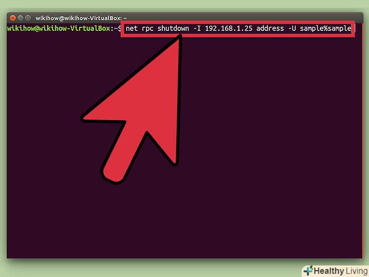 Запустіть команду віддаленого вимкнення. встановивши Samba, введіть наступну команду:- Net rpc shutdown - iIP-адреса - U ім'я користувача% пароль