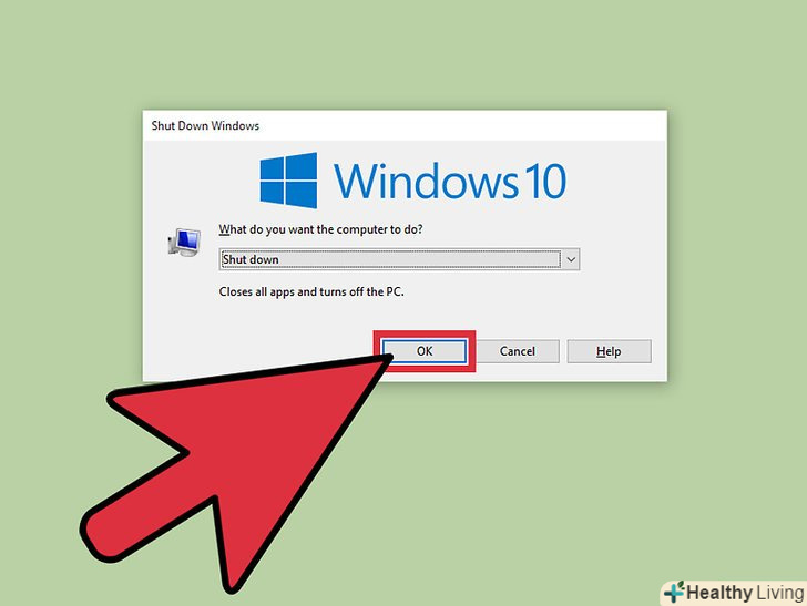 Натисніть "ОК", щоб вимкнути комп'ютер.оскільки ви використовуєте програму "Віддалений робочий стіл", з'єднання з віддаленим комп'ютером буде розірвано.[4]