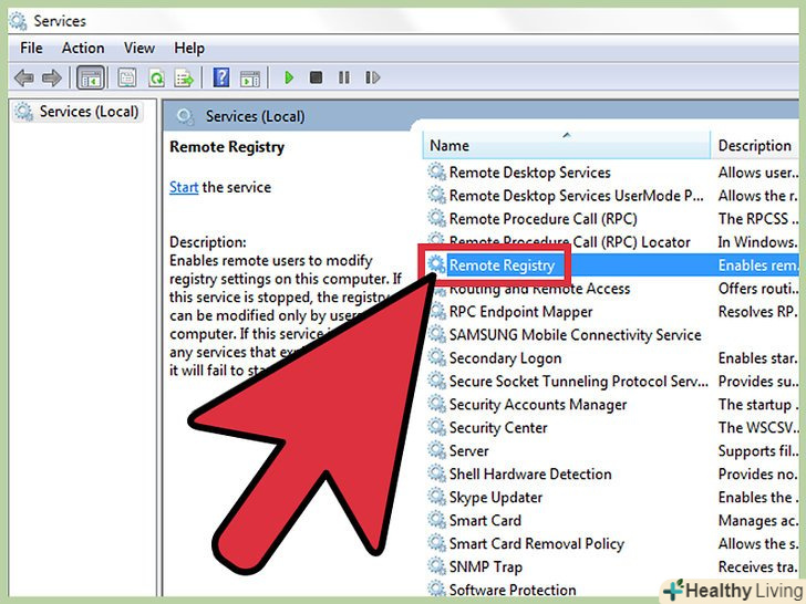 Знайдіть службу "віддалений Реєстр". За замовчуванням служби впорядковані за алфавітом.