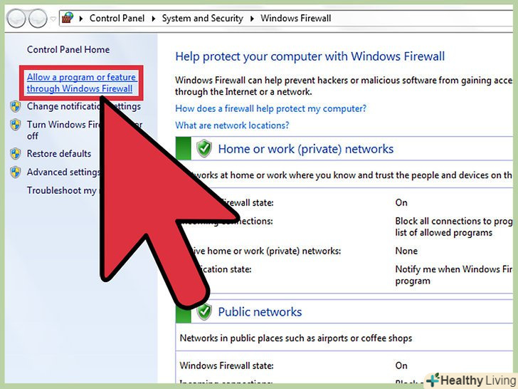 Натисніть "дозволити запуск програми або компоненти через брандмауер Windows".ви знайдете цю опцію в лівій частині вікна.