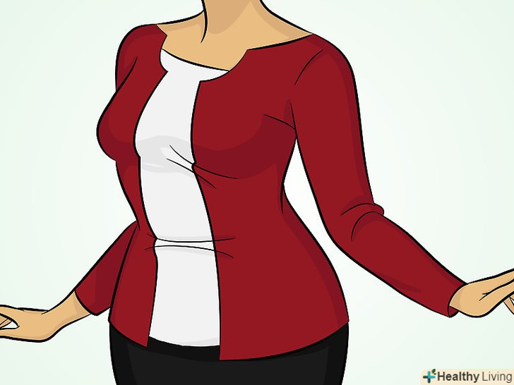Носіть кардигани, якщо у вас грушоподібний тип фігури. кардигани-це прекрасне доповнення до гардеробу, яке допомагає врівноважити верхню і нижню частину тіла для типу фігури «груша». Якщо ви наділи спідницю, накиньте кардиган поверх футболки або майки, щоб створити привабливий образ. [14]- Якщо на вулиці занадто тепло для кардигана, спробуйте надіти що-небудь схоже, але легке, наприклад жилет.