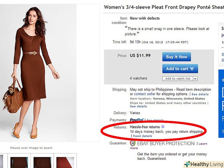 Вивчіть умови повернення. перед тим, як здійснити покупку, перевірте, чи пропонує продавець повернення і відшкодування. Купівля речей у законного продавця, який не пропонує повернення, може виявитися помилковою, тому як ви можете себе пов'язати з непридатним продуктом, який вам не підходить.