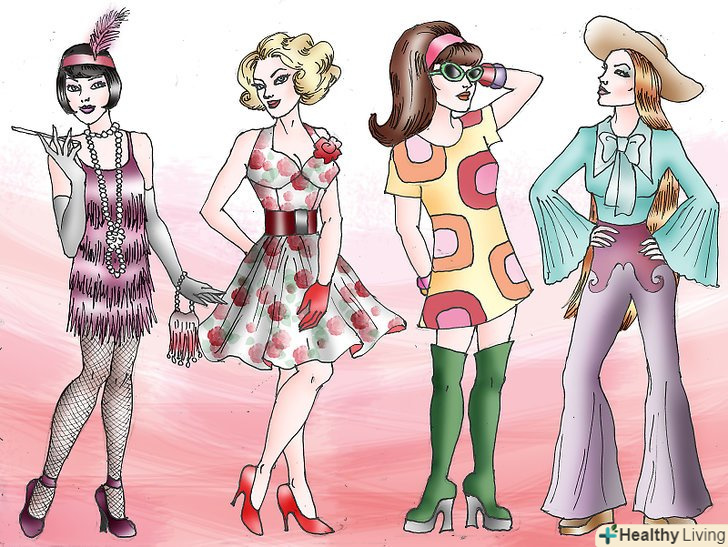 Визначтеся з тим, яка епоха вам симпатична. кожна епоха має свої особливості, і в різні роки було прийнято підкреслювати різні частини тіла. Щоб зрозуміти, що представляла з себе мода в різний час, можна подивитися фотографії кінозірок, починаючи з 30-х років. Це дозволить вам зрозуміти, що саме вам подобається найбільше. Купуйте хорошу книгу про моду 20-го століття. Крім цього, сходіть в музеї, подивіться онлайн-галереї вінтажного одягу і просто походіть по магазинах, щоб зрозуміти, чого вам хочеться. Ось кілька важливих моментів з моди, починаючи з 20-х років і закінчуючи 70-ми: [4]- 1900-1918: зародження високої моди, важливі реформи в одязі і кілька радикальні рішення в часи Першої світової війни.