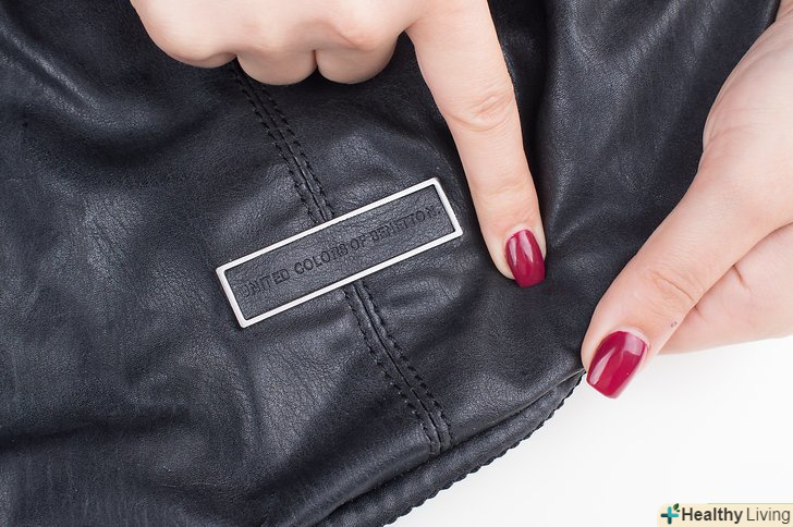 Остерігайтеся покупки виробів, на яких немає бирки "натуральна шкіра". Якщо є позначка "штучний матеріал", значить це безумовно синтетична шкіра. Якщо не вказано нічого, то, швидше за все, виробник хоче промовчати про те, що шкіра не справжня. [1] звичайно, на колишніх у використанні речах може і зовсім не бути бирок. Однак більшість виробників пишається тим, що використовують натуральну шкіру, тому роблять відповідні позначки:- Натуральна шкіра