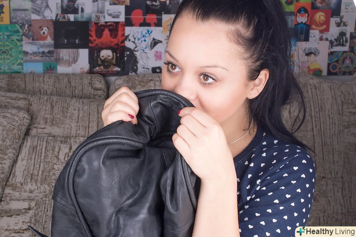 Понюхайте виріб. Запах повинен бути натуральним і трохи затхлим, а не пластиковим і хімічним. Якщо ви не знаєте, як повинна пахнути шкіра, вирушайте в магазин, в якому продаються вироби з натуральної шкіри, і перевірте кілька сумок і пар взуття. Запитайте, чи немає в продажу синтетичних виробів, і порівняйте обидва продукти. Після такого експерименту ви безпомилково зможете розрізнити запах натуральної шкіри.- Слід пам'ятати, що натуральна шкіра виготовлена зі шкіри тварини. Штучна шкіра виробляється з пластику. Очевидно, що натуральний матеріал пахне шкірою, а штучний-пластиком.