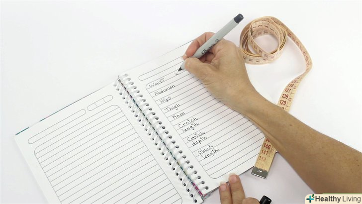 Приготуйтеся записати мірки. Вам буде потрібно зняти досить багато мірок, тому не варто покладатися на те, що вам вдасться їх запам'ятати! Візьміть аркуш паперу і ручку або просто створіть замітку в своєму телефоні. [2]- Можна також попросити кого-небудь записувати Ваші мірки, коли ви будете їх називати.
