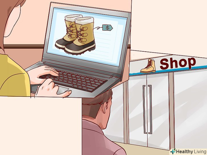 Порівняйте ціни в Інтернеті і в магазині. порівняння цін стане гарною ідеєю, завдяки якій ви зможете зробити вигідну покупку. Звірте ціни в місцевих магазинах і в Інтернеті. Перевага придбання в магазині в тому, що ви можете забрати взуття відразу ж після примірки, і при цьому вам не потрібно буде платити за доставку. Перевага покупки через Інтернет полягає в тому, що тут у вас може бути великий вибір і черевики обійдуться вам дешевше.- Переконайтеся, що ви порівнюєте одні й ті ж чоботи, коли ходите по різних магазинах. Навіть невелика різниця в стилі взуття може відбитися на її якості.