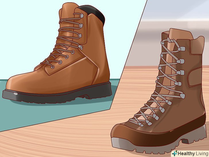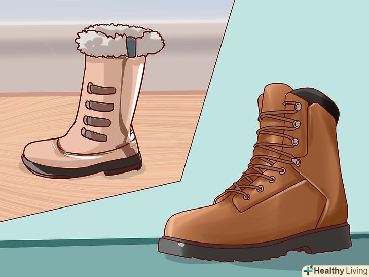Визначте відповідну висоту черевиків. [2] чим вище черевики, тим краще вони зможуть захистити ваші ноги від високого снігу. До того ж високі черевики краще фіксують кісточку. З іншого боку, низькі черевики не сковують рухи, а також їх набагато легше знімати і надягати.- Досить високі черевики гарантовано захистять ваші ступні і щиколотки від снігу.
