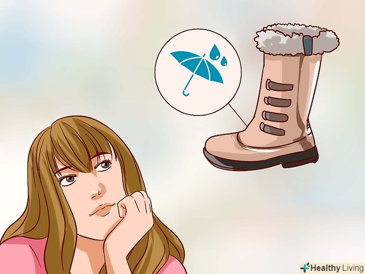 Вирішіть, чи потрібні вам водонепроникні чоботи. більшість людей хочуть мати водонепроникні чоботи, які дозволять запобігти намокання ніг. Однак існують різні рівні гідроізоляції. Ідеальні водонепроникні чоботи виглядають не дуже стильно на відміну від тих, які не призначені для використання в дуже вологому середовищі. Однак існує безліч частково-водонепроникних черевиків, які при цьому виглядають привабливо.- Якщо черевики вологостійкі, але не водонепроникні, то ви повинні мати змінну пару взуття на той випадок, якщо вони намокнуть. Так ви зможете носити другу пару, поки перша не висохне.