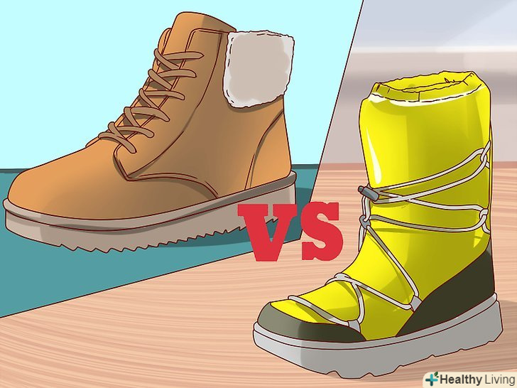 Виберіть між утепленими і неутепленими черевиками. Вам необхідно, щоб під час ходіння по снігу ноги завжди залишалися в теплі, проте їм не повинно бути при цьому жарко. Візьміть до уваги температуру повітря і подумайте, наскільки тепло повинно бути вашим ногам. [1]- Ви можете купити чоботи зі змінними устілками для поліпшення їх теплоізоляції. При необхідності варто розглянути саме цей варіант.