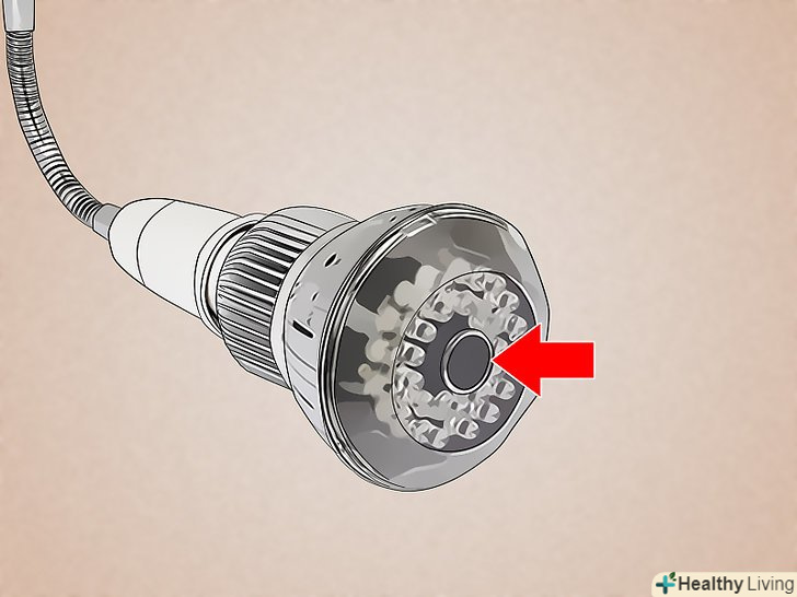 Вимкніть світло, щоб знайти індикатори камери.у більшості камер є червона або зелена лампочка, яка постійно блимає або горить безперервно. Якщо приховані камери були погано встановлені, Ви зможете побачити цю лампочку, коли вимкніть світло в кімнаті.- Звичайно, мало шансів, що той, хто встановив приховані камери, був настільки недбалий, щоб не заховати світлові індикатори. Тому не виключайте наявність прихованих камер, якщо ви не бачите їх світло.