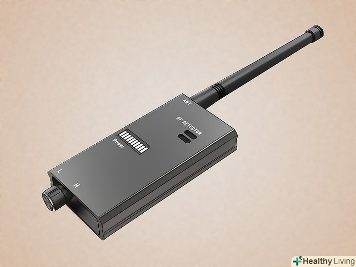 Купіть і скористайтеся радіочастотним детектором.з ним Ви зможете просканувати місцевість на наявність прихованих камер, фізично переміщаючи його по кімнаті і прислухаючись до зворотного зв'язку. Якщо ви почуєте раптовий тріск або звуковий сигнал через детектор, великі шанси, що ви знайдете приховану камеру перед ним.- При використанні радіочастотного детектора вам потрібно буде відключити всі прилади, які передають радіосигнали. До них відносяться такі речі, як кухонне обладнання, радіоняні, роутери і модеми, ігрові консолі, телевізори і так далі.