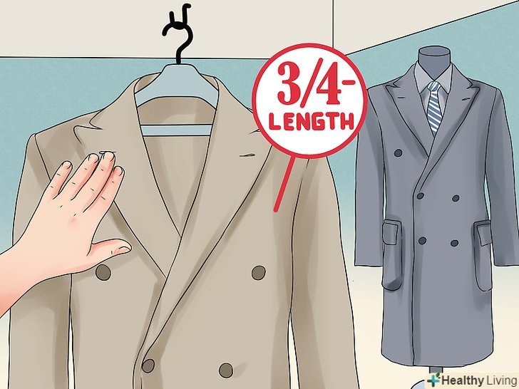 Виберіть пальто довжиною 3/4, якщо хочете, щоб воно виглядало більш щільно сидить. Довжина 3/4 - це більш популярний сучасний, щільно сидить стиль. Таке пальто має закінчуватися трохи вище колін.