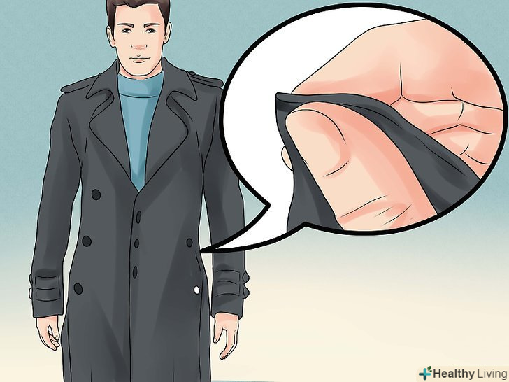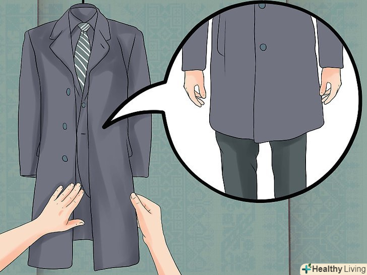 Відправляйтеся в магазин, одягнувши костюм, який ви зазвичай будете носити під цим пальто. застебніть всі гудзики пальто і подивіться, чи немає х-образних збірок на грудях і під пахвами. Для більш гладкої посадки виберіть більший розмір.