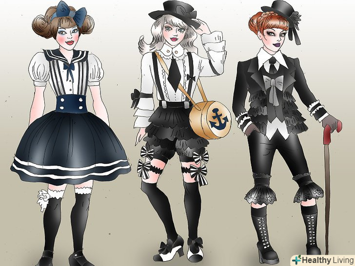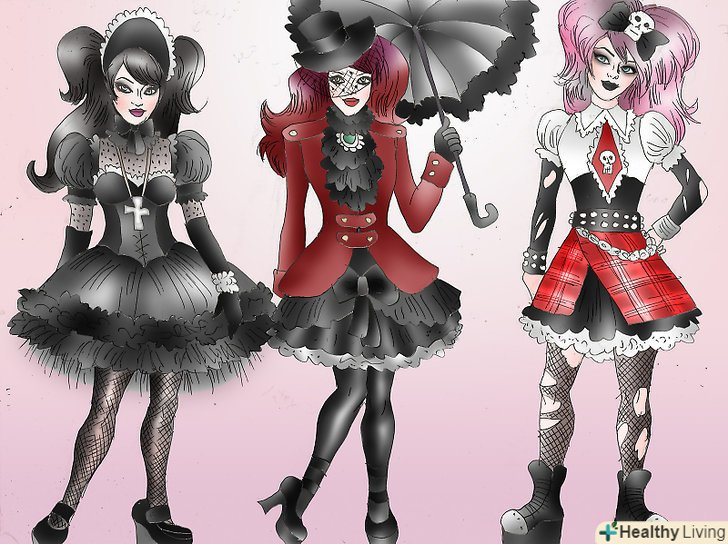 Спробуйте класичний стиль "поганої дівчинки". готична Лоліта-один з найпопулярніших нарядів даного стилю. Він досить скромний і характеризується спідницею дзвоном, пишними рукавами і містичним макіяжем. Ця, як правило, одяг чорного або будь-яких красивих насичених темних кольорів, наприклад, фіолетового, темно-червоного і темно-синього.- Одягайтеся гуро-Лолітою – стиль, який намагається зобразити "розбиту ляльку". Виглядає жахливо, але в той же час невинно. Одяг білого кольору з плямами крові виглядає найкраще. Ступінь закривавленості - на ваш розсуд, і може варіюватися від декількох бинтів і пластирів до бризків крові на одязі.