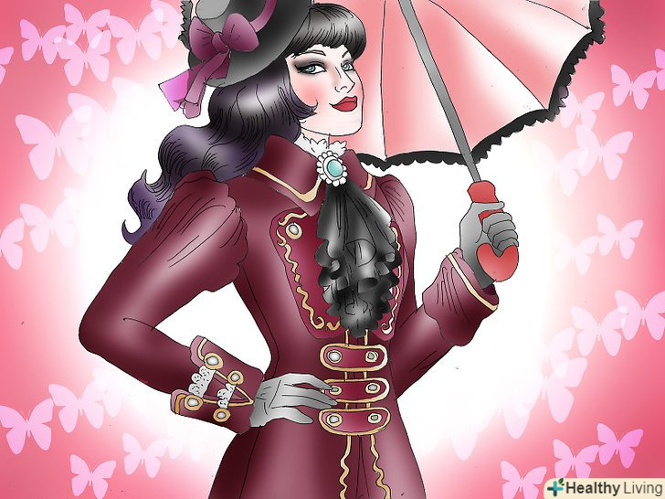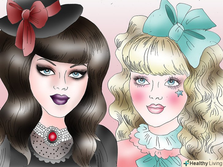 Зробіть правильний макіяж. грайте на контрасті. Зазвичай в стилі Лоліта не передбачається нанесення складного макіяжу, але на блідому тлі акцентовані очі і губи зроблять вас модницею вікторіанської епохи. [1]- Готичний макіяж передбачає темно пурпурну або червону помаду і темні димчасті тіні для очей. Солодка Лоліта повинна сконцентрувати свою увагу на тоні шкіри. Тут потрібен світлий природний макіяж.