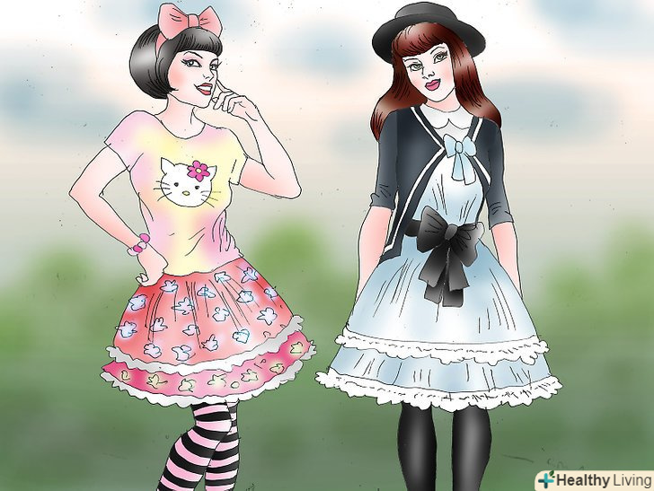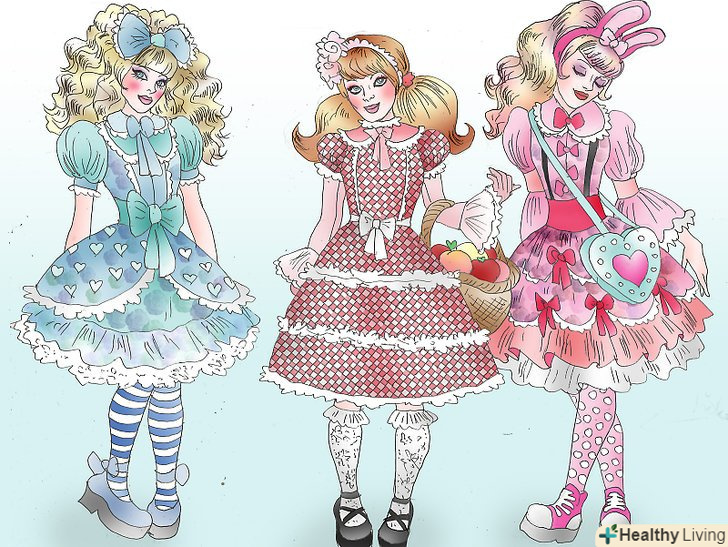 Спробуйте стиль милої дівчинки , так звана солодка Лоліта . цей стиль повністю протилежний готичному. Тут присутня велика кількість бантів, шпильок і оборок. Таке вбрання, як правило, пастельних кольорів: рожевий, кремово-білий, зеленувато-блакитний і світло-лавандовий. Тканина може бути навіть в клітку або взагалі будь-яких кольорів, крім неонових. Волосся хвилясте.- Сільська Лоліта. Тут використовуються солом'яні кошики, фрукти і візерункові парасольки. Більшість нарядів Лоліти вимагають заховану під джемпер блузку і спідницю, проте блузку можна залишити і на випуск.