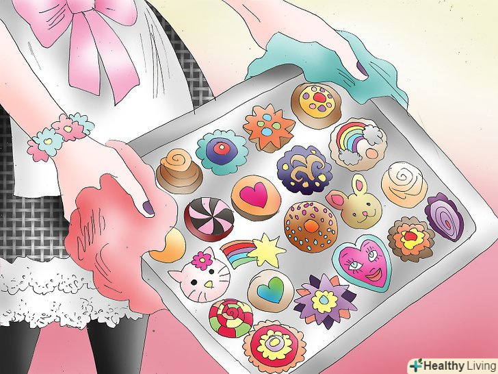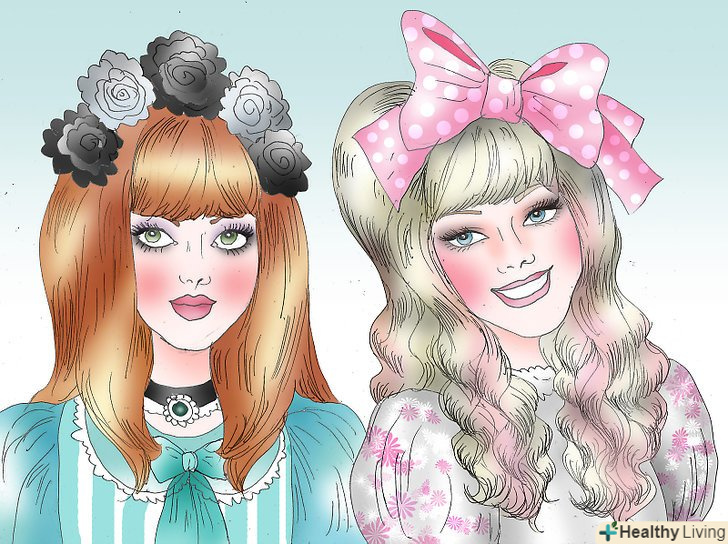 Знайдіть милу шпильку або бант для волосся. Лоліта не повинна виходити з дому без милого маленького банта або шпильки в волоссі. Мила шпилька, бант або квітка привернуть увагу до волосся. Подібні аксесуари притаманні даному стилю.- Аксесуари для волосся дуже популярні і продаються у великій різноманітності. Ви можете навіть самі зробити такий аксесуар з тканини.