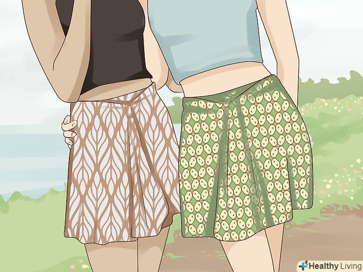 Спробуйте замість спідниці надітиСаронг . Саронг-це смуга тканини, яка обертається навколо пояса або зав'язується на грудях. Цей традиційний предмет одягу з країн Південно-Східної Азії в 1990-і став дуже популярним на Заході. Багато жінок носили саронг замість спідниці. [13]- Зав'язати саронг просто: оберніть тканину навколо талії, а кінці зав'яжіть вузлом на рівні пупка. Потім посуньте вузол набік, наліво або направо, і розправте кути тканини, щоб вони звисали красивою драпіруванням.