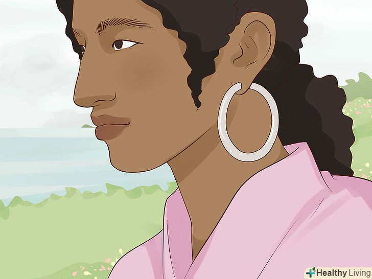 Якщо у вас проколоті вуха, надіньте сережки-кільця. невеликі срібні сережки-кільця в 90-ті носили багато популярних акторів телесеріалів. Вставте по одній сережці в кожне вухо. Якщо ваші вуха проколоті в декількох місцях, великі кільця краще всунути в нижні отвори, а кільця поменше — в наступні. [16]- Сережки-кільця можуть також бути золотими або чорними.
