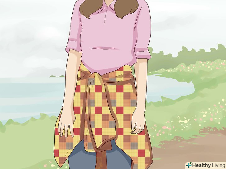 Пов'яжіть толстовку або светр навколо талії. у 90-ті було модно носити толстовку, зав'язавши рукава вузлом на поясі. Часто толстовку брали з собою на випадок холодної погоди, та так і носили її зав'язаною навколо талії. Основна частина толстовки або светри при цьому знаходиться у вас за спиною, а рукава зав'язуються попереду вузлом. [7]- Крім толстовки і светри таким чином можна носити фланелеву сорочку або кардиган.