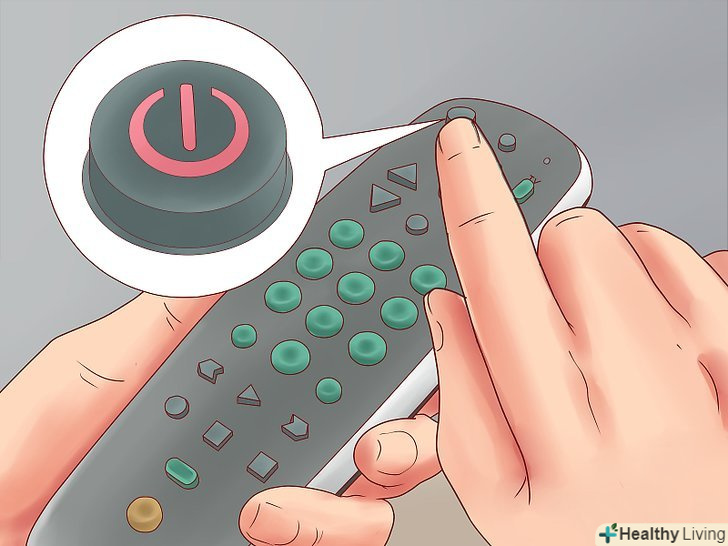 Натисніть кнопку живлення.при кожному натисканні кнопки живлення наступний код (зі списку бренд-кодів) відправляється на пристрій. При цьому кнопка живлення буде блимати. Продовжуйте натискати кнопку живлення, поки пристрій не вимкнеться. Це означає, що Ви знайшли правильний код.- Якщо ви ввели всі бренд-коди зі списку, кнопка живлення блимне чотири рази, а потім згасне. В цьому випадку скористайтеся іншим методом, описаним в цій статті.