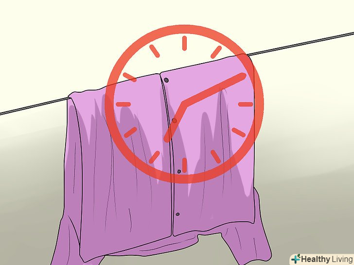 Дайте клею висохнути протягом 24 годин. покладіть оброблену річ в сухе, тепле, провітрюване приміщення. Переконайтеся, що на тканині немає складок, інакше через клею вони застигнуть на століття. Коли розчин клею висохне, річ можна буде надіти.