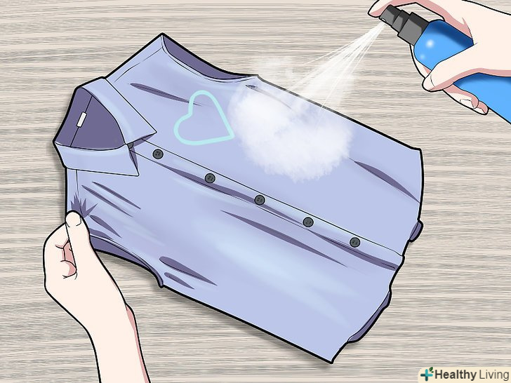 Струсіть надлишки Гліттера і приготуйтеся обприскати одяг. сильно струсіть одяг, щоб прибрати зайві блискітки, які на ній взагалі не тримаються. Візьміть рушник і покладіть його на плоску суху поверхню. Потім візьміть річ і покладіть її на рушник. Розгладьте складки.- Якщо на одязі будуть складки, через лаку вони можуть зафіксуватися. Якщо одяг вся в складках, подумайте про те, щоб спершу її проутюжить.
