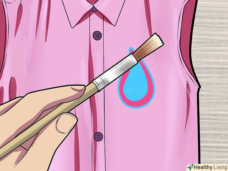 Нанесіть розчин на гліттер. Візьміть газету і підкладіть її під предмет одягу, який ви хочете обробити. Візьміть синтетичну пензлик і нанесіть клей на місця, прикрашені глітером. Дивіться, щоб блискітки не відшарувалися, і повністю покрийте глітер розчином.