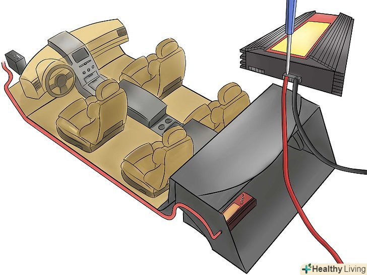 Зберіть ваше обладнання (Підсилювач, Саби, колонки і дроти).ви можете знайти комплекти проводки в більшості магазинів, за 1400 рублів ви зможете купити дроти 4-го калібру (5,189 мм) і лінійний запобіжник. Провід більшого калібру, ніж 4-й вам не знадобляться.- Якщо ви використовуєте неоригінальну автомагнітолу, сходіть в магазин електроніки, знайдіть відділ магнітол і попросіть набір проводів для вашого автомобіля до неоригінальної автомагнітоли. Приклад: якщо у вас автомобіль Шевроле і автомагнітола Sony скажіть, що вам потрібні дроти в Шевроле для автомагнітоли Sony. У вас запитають Рік випуску вашого автомобіля і дадуть з полиці необхідний комплект проводів, як правило, вони знаходяться за прилавком. Після того як ви роздобули все необхідне, розкрутіть стару автомагнітолу, яка встановлена у вас зараз, від'єднайте її і підключіть нові дроти до нової магнітоли. При покупці нових проводів переконайтеся, що вони тієї ж форми/розміру і у вашої магнітоли.