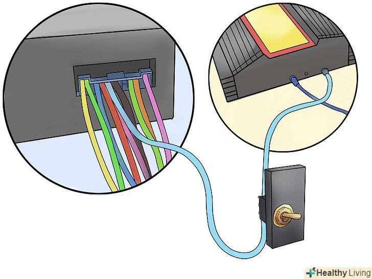 Тепер про віддалене живлення (синій провід). якщо ви використовуєте неоригінальну автомагнітолу, там буде синій дріт, що йде з задньої частини магнітоли, в більшості випадків він просто примотаний. Просто відріжте його, відмотайте Старий кінець і проведіть ваш провід для віддаленого живлення до підсилювача. Якщо ви використовуєте оригінальну автомагнітолу, вам потрібно придбати перемикач( на ваш смак), знайти зручне або потайне місце для його розміщення, куди вам потрібно буде протягнути провід від підсилювача. Проведіть дріт до перемикача, розріжте його, приєднайте його до однієї клеми, а потім приєднайте кінець, який ви тільки що обрізали до другої клеми. Потім проведіть дріт назад до підсилювача і відріжте, залишаючи запас близько 30 см.це знадобиться пізніше.