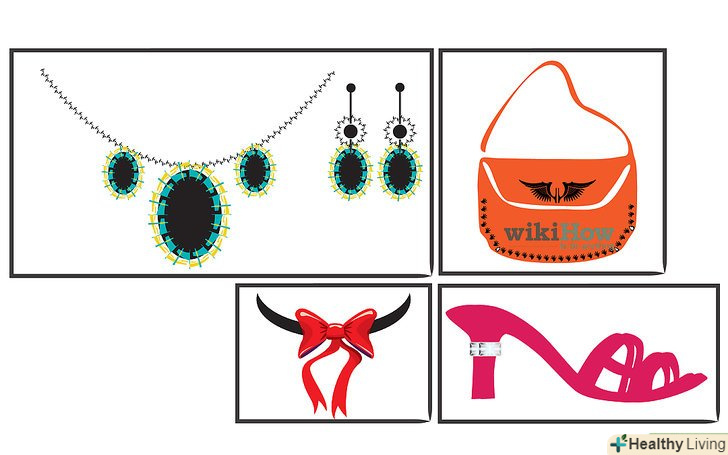 Доповніть образ біжутерією (якщо захочете). довгі нитки з перлами, яскраві кліпси, несправжні кільця будуть забавним доповненням до дитячого костюму на чайну вечірку. Пошукайте недорогі прикраси серед вашої власної біжутерії або подивіться в магазині.