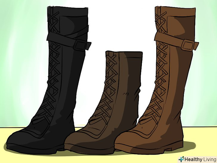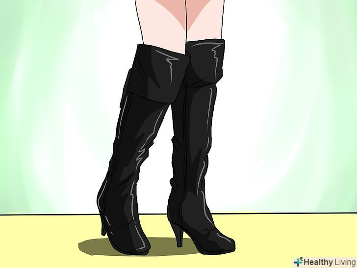 Завершіть образ шкіряними чобітьми. куди важливіше шкіряної куртки і шкіряних штанів, напевно, все-таки є шкіряні чоботи. Щоб додати сексуальності, надіньте шкіряні чоботи до колін або по коліно, не забувши при цьому про сукню. Звичайні короткі мотоциклетні черевики більш універсальні-їх ви можете надягати під будь-який наряд. [10]