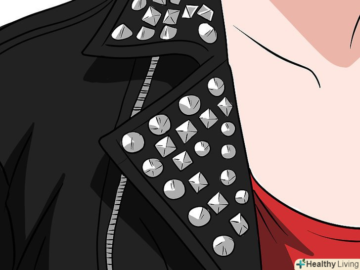 Ніколи не відмовляйтеся від заклепок. Заклепки є невід'ємною частиною іміджу рокерші. Заклепки можуть бути на чому завгодно-на черевиках, жилетках, джинсах, прикрасах, сумках. Чим більше заклепок, тим краще.- Ви без зусиль можете додати заклепки на будь-яку наявну одяг. Купуйте заклепки в магазині товарів для рукоділля і закріпіть їх на джинсах, жилетці або іншому одязі. [11]