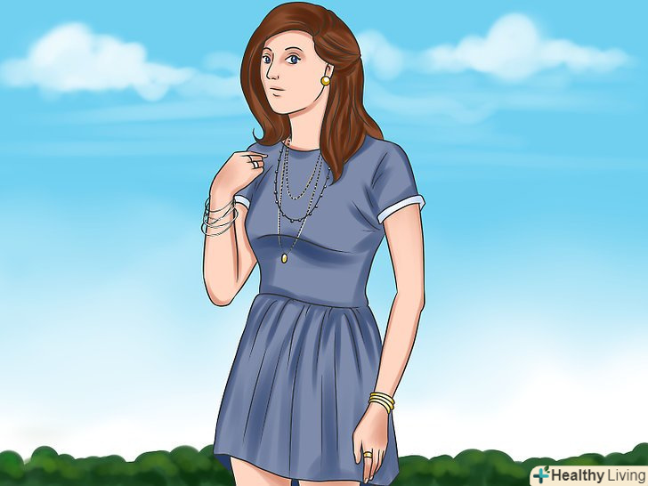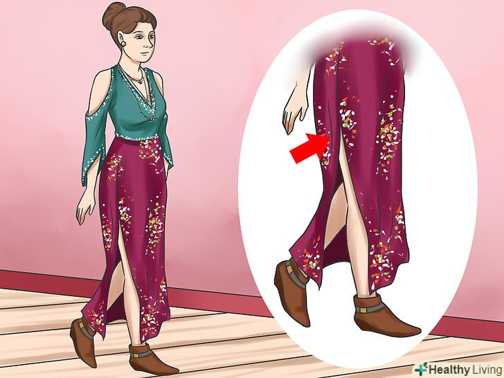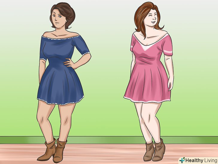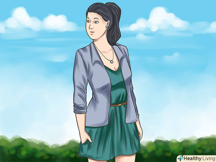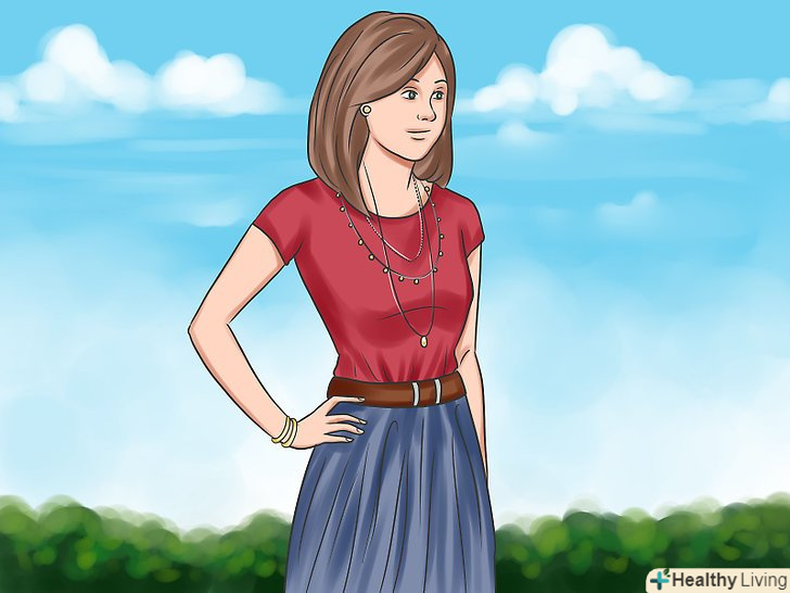 Одягніть ремінь, щоб ваша талія здавалася стрункішою. [17] для образу бохо ви можете спробувати використовувати широкий шкіряний ремінь і спадаюче плаття з бавовни або льону. Для створення більш елегантного зовнішнього вигляду спробуйте поєднувати тонкий ремінь, просте плаття і ботильйони на тонкому каблуці.