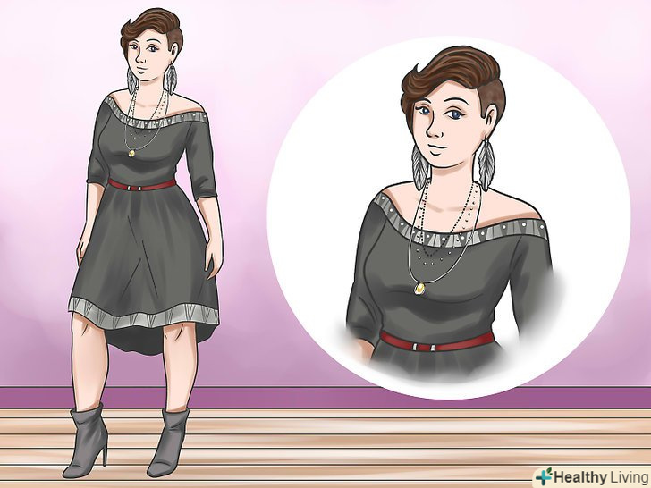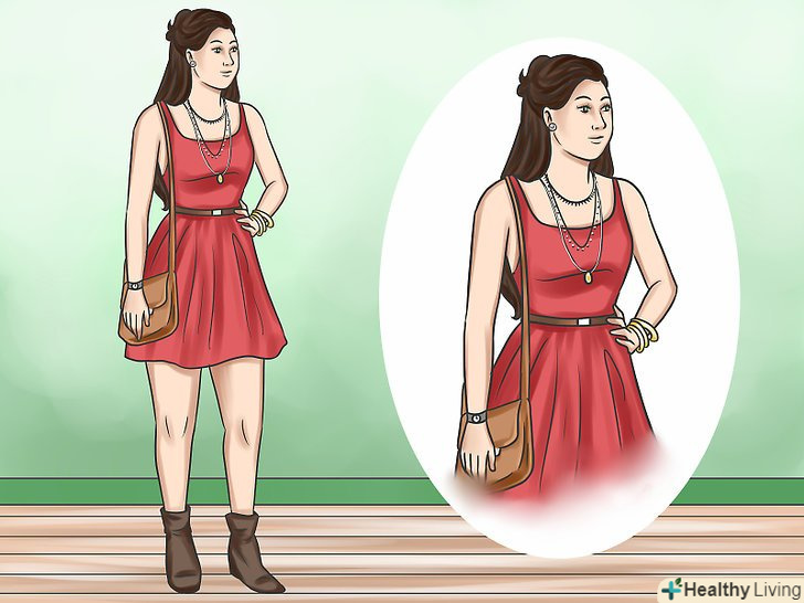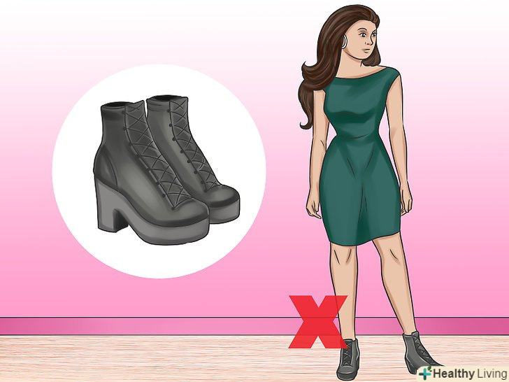 Намагайтеся не носити облягаючі сукні з низькими об'ємними черевиками. громіздкі і важкі черевики будуть "тягнути" плаття вниз. Деякі аксесуари, такі як звичайний пояс, не зіпсують ваш образ. [10]