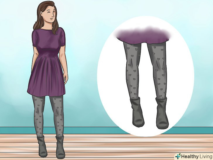 Спробуйте надіти колготки з візерунком, якщо ваша взуття і плаття виглядають занадто просто. чорні колготки і ботильйони прекрасно подовжують ноги, але вони не зроблять ваш наряд цікавим. Колготки з візерунком допоможуть вам у цьому. [16] Колготки повинні відповідати вашому образу; наприклад, якщо на вашій сукні принт з троянд, спробуйте надіти мереживні колготки зі схожим малюнком. Якщо на ваших ботильонах є принт у вигляді шеврона, спробуйте поєднувати їх зі схожими колготами.