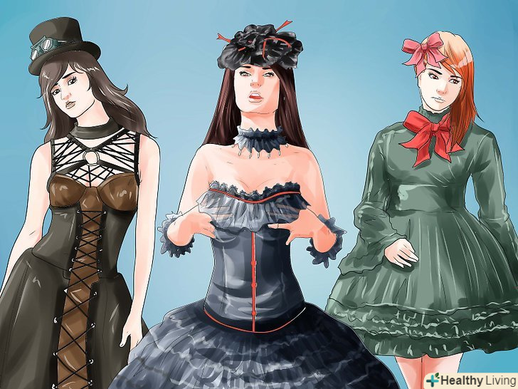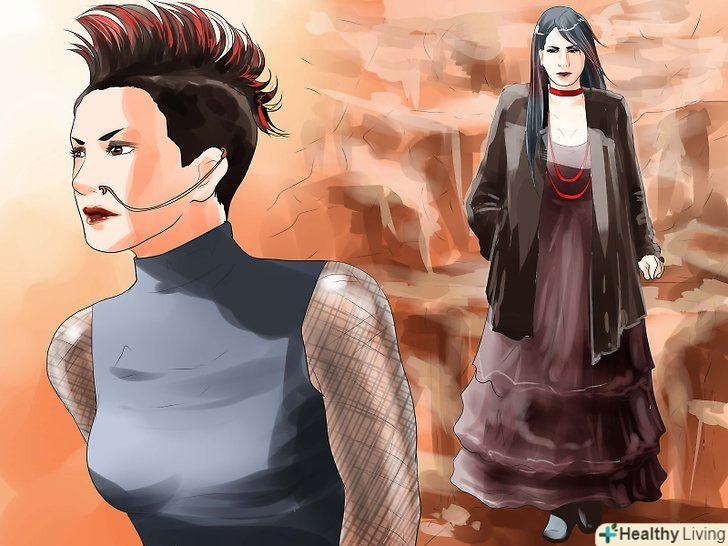 - Вирішіть, яким чином ви хочете бути. Не потрібно навішувати на себе ярлики, проте зі стилем потрібно визначитися хоча б для того, щоб підібрати гардероб. Вам подобаються летять спідниці і блузки з рюшами? Вам підійде романінтіческая готика. Віддаєте перевагу шипи, ланцюги і рваний одяг? Тоді приміряйт