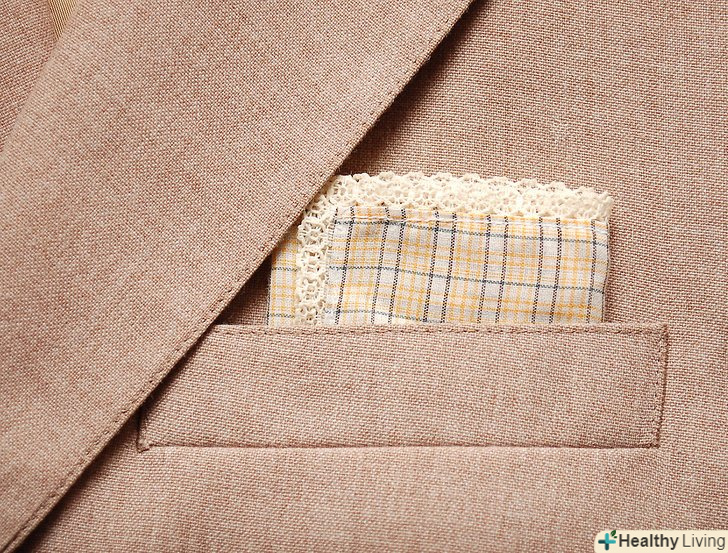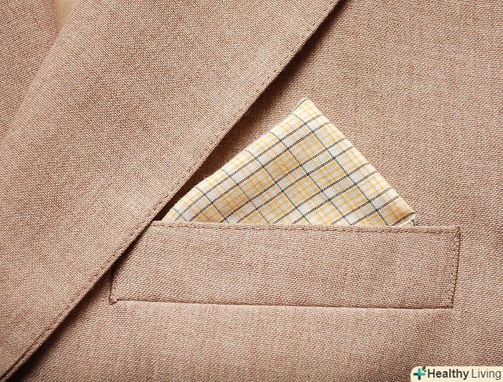 Виберіть хустку з щільної або накрохмаленої тканини, наприклад, з дуже щільної бавовняної тканини, ірландського льону, шовку або шовкової суміші. Краї, що виступають над кишенею не повинні складатися або звисати.