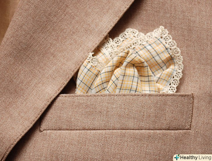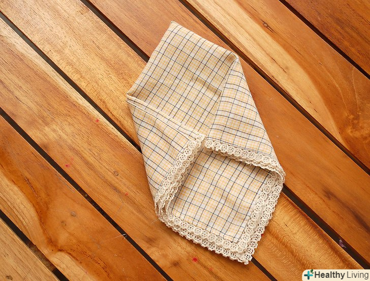 - Деякі якісні носові хустки мають в комплекті дизайнерські або фабричні вишивки; переконайтеся, що вони не видно на будь-якому краї складеного хустки.