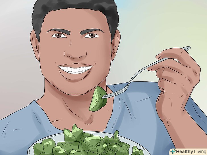 - Вживайте різні види продуктів, особливо фруктів і овочів. Щоб отримувати поживні речовини, необхідні для вашого здоров'я, вам потрібно їсти багато фруктів і овочів. Включайте хоча б одну порцію овочів або фруктів в кожен прийом їжі. Фрукти і овочі також добре підходять для перекусу між прийомами їжі. [20]