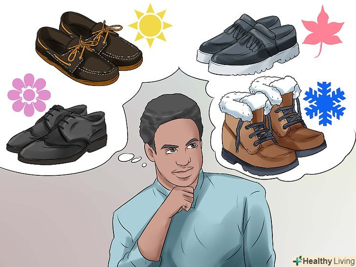 Носіть взуття, яке поєднується з вашим одягом і часом року. у вас повинна була взуття на кожен сезон, особливо якщо в місцевості, де ви живете, погода різко змінюється. [3] [4]- Якщо ви жінка:
