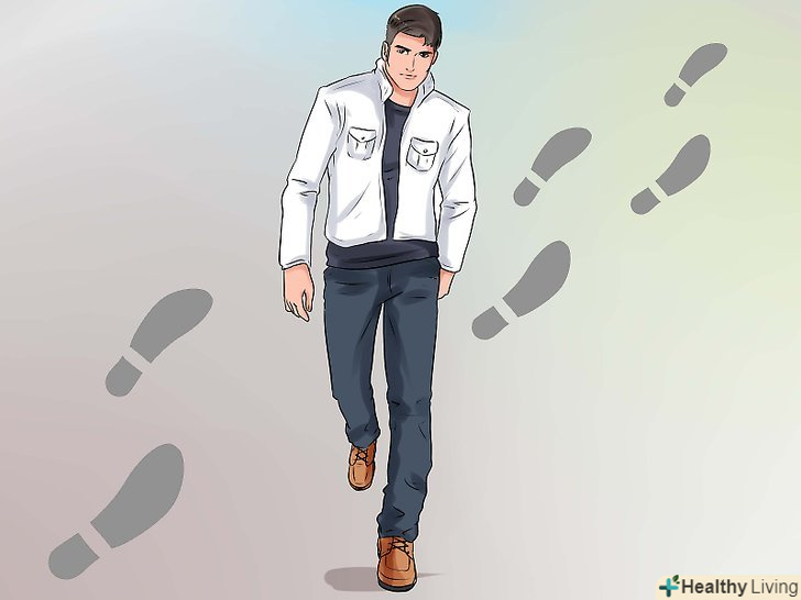 Тренуйте ходу моделі. щоб виглядати як модель, ви повинні мати модельну ходу. Підтримуйте бездоганну поставу, ходіть прямо, ставлячи одну ногу попереду іншої, дозвольте рукам перебувати в природному положенні з боків і крокуйте впевнено. [8]- Робіть довгі кроки і ставте одну ногу чітко попереду іншої. При ходьбі намагайтеся, щоб пальці ніг завжди були спрямовані строго вперед.