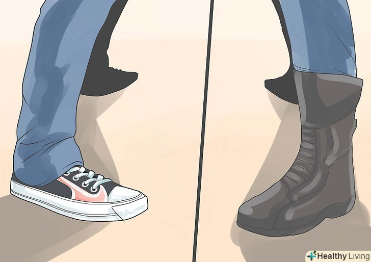 Взувайтеся в байкерські черевики Harley Davidson, чоботи Gripfast зі сталевим носком або кеди Chuck Taylor. Пара важких черевиків Harley Davidson або Doc Martin теж підійдуть. Якщо ви хочете бути справжнім симпатягою, для щоденного використання або особливих випадків, підберіть черевики з шипами на зразок T. U. K. S. або Оксфордські туфлі brgt;