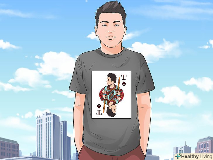 Носіть футболки з символікою груп. підтримуйте свої улюблені групи і носіть футболки з логотипами або іншими тематичними образами. Одяг як індикатор музичних смаків-поширена практика серед металістів. Також це відмінний привід для початку бесіди. А найкраще те, що тематичні футболки майже завжди чорні, тому вам не потрібно буде переживати про колірних поєднаннях. [10]- Продаж речей з символікою — значна частина доходу багатьох метал-Груп. Якщо ви хочете підтримати улюблену команду, то купуйте ліцензовані речі та інші продукти, які продає сама група. [11]