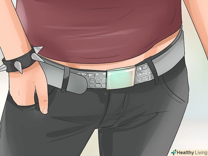 Використовуйте аксесуари. не обмежуйтеся тільки темним одягом. Покажіть своє неприйняття соціальних норм за допомогою гострих шипів і ювелірних виробів, масивної чорної взуття або атрибутів війни і смерті. Відмінним вибором стануть Бойові, джинсові або шкіряні жилети і куртки, прикрашені шипами, нашивками або кнопками. [12]- Мета таких образів — мати страхітливий, задумливий і антисоціальний вигляд. Теми насильства і агресії на зразок сучасної і середньовічної зброї, вікінгів, війни також набули широкого поширення.