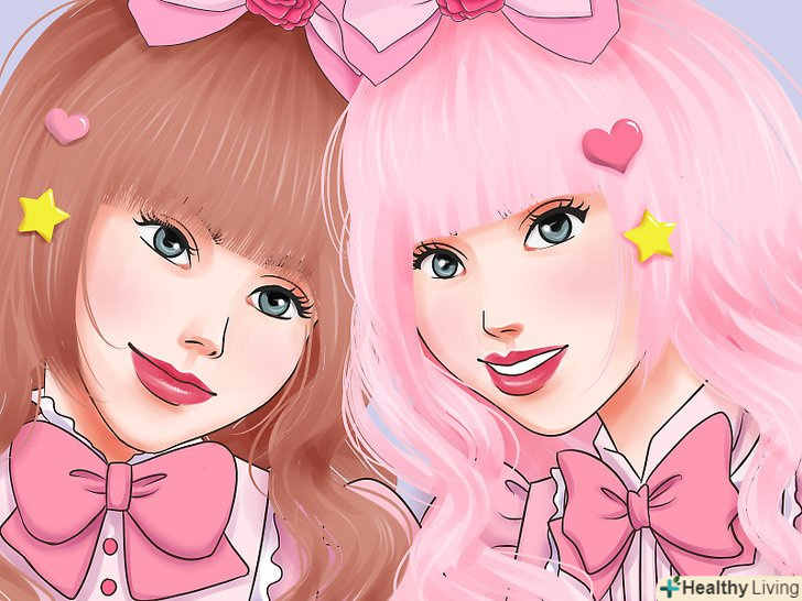 Зробіть макіяж в стилі Лоліта. стікери на обличчя виглядають чудово, а світло-рожеві рум'яна-це обов'язковий елемент макіяжу! Накладні вії не повинні бути занадто довгими, інакше вони будуть виглядати неприродно.