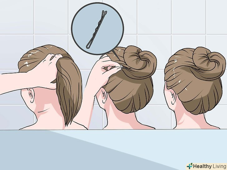 Затягніть волосся в пучок. Гулька є ще однією простою зачіскою. Скрутіть хвостик в вузол і перетягніть інший пасмом волосся або ж просто зафіксуйте шпильками.- Чоловіки можуть створити стильну зачіску, якщо стягнуть волосся назад і скрутять їх в гульку прямо під лінією підбривання шиї.