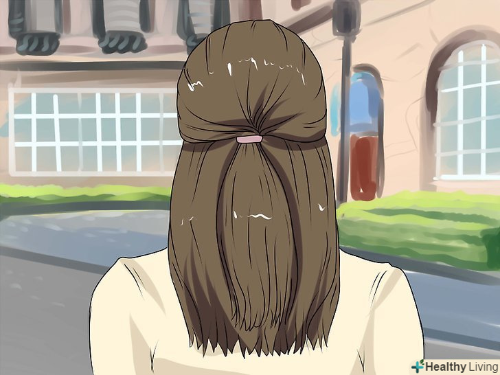 Стягніть частину волосся ззаду. зберіть волосся від скронь до задньої частини голови і зафіксуйте їх по центру гумкою або шпилькою. Ви також можете прибрати невеликі пасма подалі від особи і закріпити їх на задній частині голови. Використовуйте пов'язку для волосся для створення зачіски в зовсім іншому стилі, якщо ви хочете прибрати волосся від обличчя і не стягувати їх при цьому на потилиці.
